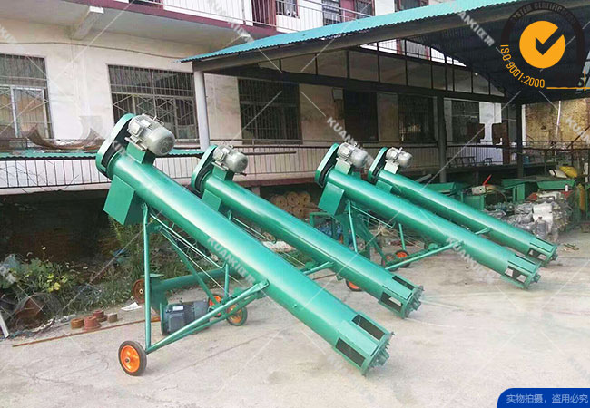 螺旋提升机(绞龙提升机)能规则地控制和连续输送粉状和小块状物料,如粮食、饲料、煤粉、水泥、熟料、复混肥、谷类、菜籽等。适用于粮食收购商,饲料厂,化工厂,肥料厂等提升输送物料使用,可输送散落性物料较好、干燥的粒状物和粉状物,其推力大、速度快。本机用于水平、倾斜或短距离输送物料,在输送同时兼具有搅拌功能,可多点进料、出料。适用于输送粮食,化工原料,粉状物,颗粒状物的提升搅拌输送.主要组成部分采用加厚无缝钢管和冷轧式螺旋叶片焊接成型.它具有良好的密封性,无粉尘泄漏。机架采用加厚角铁为支撑架,可方便移动.