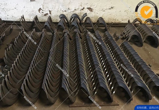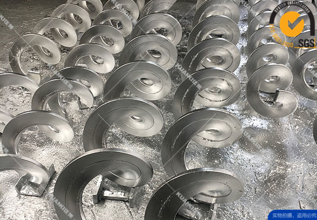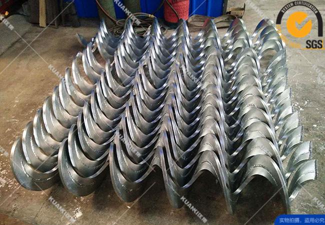 2、"分段等厚螺旋叶片"为单螺距形态,外沿厚度与内孔厚度几乎一致。成型后外径,内径,螺距即可准确地达到客户所需尺寸。
