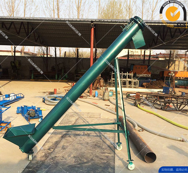 螺旋提升机(绞龙提升机)能规则地控制和连续输送粉状和小块状物料,如粮食、饲料、煤粉、水泥、熟料、复混肥、谷类、菜籽等。适用于粮食收购商,饲料厂,化工厂,肥料厂等提升输送物料使用,可输送散落性物料较好、干燥的粒状物和粉状物,其推力大、速度快。本机用于水平、倾斜或短距离输送物料,在输送同时兼具有搅拌功能,可多点进料、出料。适用于输送粮食,化工原料,粉状物,颗粒状物的提升搅拌输送.主要组成部分采用加厚无缝钢管和冷轧式螺旋叶片焊接成型.它具有良好的密封性,无粉尘泄漏。机架采用加厚角铁为支撑架,可方便移动.